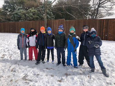 We love that there are so many school friends in the hood. Some of the 5th grade boys got together one afternoon for a snowball fight. Left to right: Adam Thomason, Liam Fesler, Caden, Daniel Crow, Drew Dzina, Shep McFarlane, Cooper Dow, and Andrew Dawson.