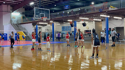 The new boys basketball coach is trying to get the whole school more involved with basketball. So they organized a 3v3 basketball tournament night for 3rd-8th graders. Annabelle, Audrey, Makenna Cleary, and Hadley Sullivan ready to play.